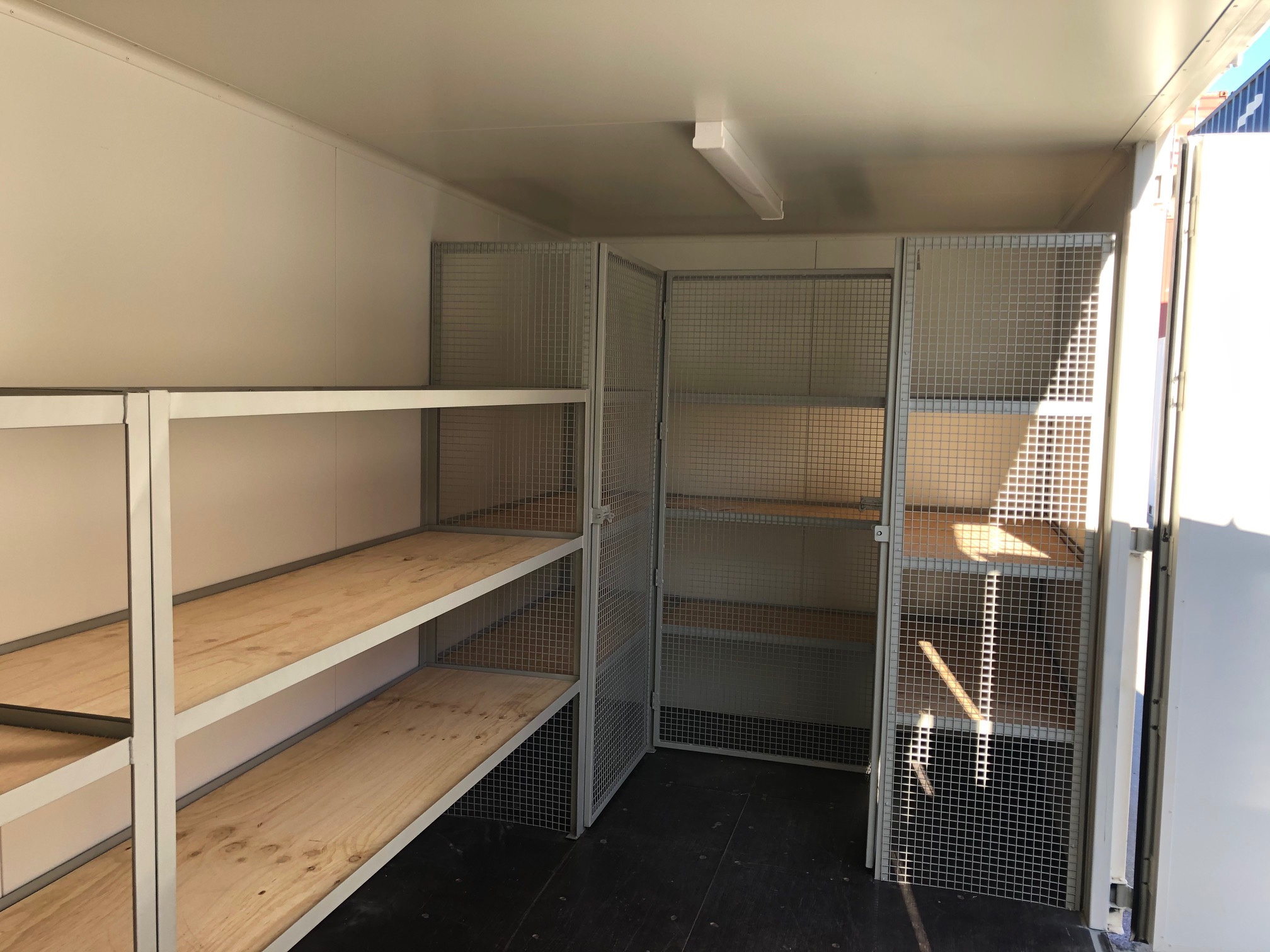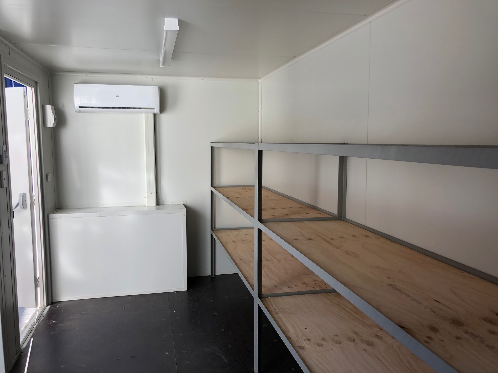 Need additional business or home storage? Fit three tier shelving, add whirly birds and some lighting for an archive storage container.